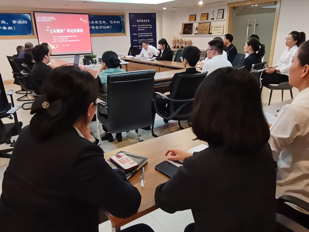 2023年11月1日,学院和合文旅宣讲团开展“义乌精神印记在酒店”主题宣讲活动,主办单位为义乌海洋酒店,活动在酒店会议室进行,酒店54名员工参加。