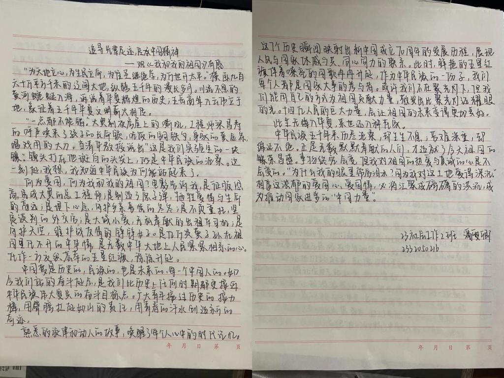 观影现场气氛热烈,同学们聚精会神地观看着影片。当银幕上呈现出开国大典的盛况、第一颗原子弹爆炸成功的激动时刻、中国女排夺得奥运会冠军的喜悦瞬间,以及香港回归、北京奥运会举办等历史性时刻时,现场同学们纷纷拿出纸笔记录自己此时此刻的感悟。