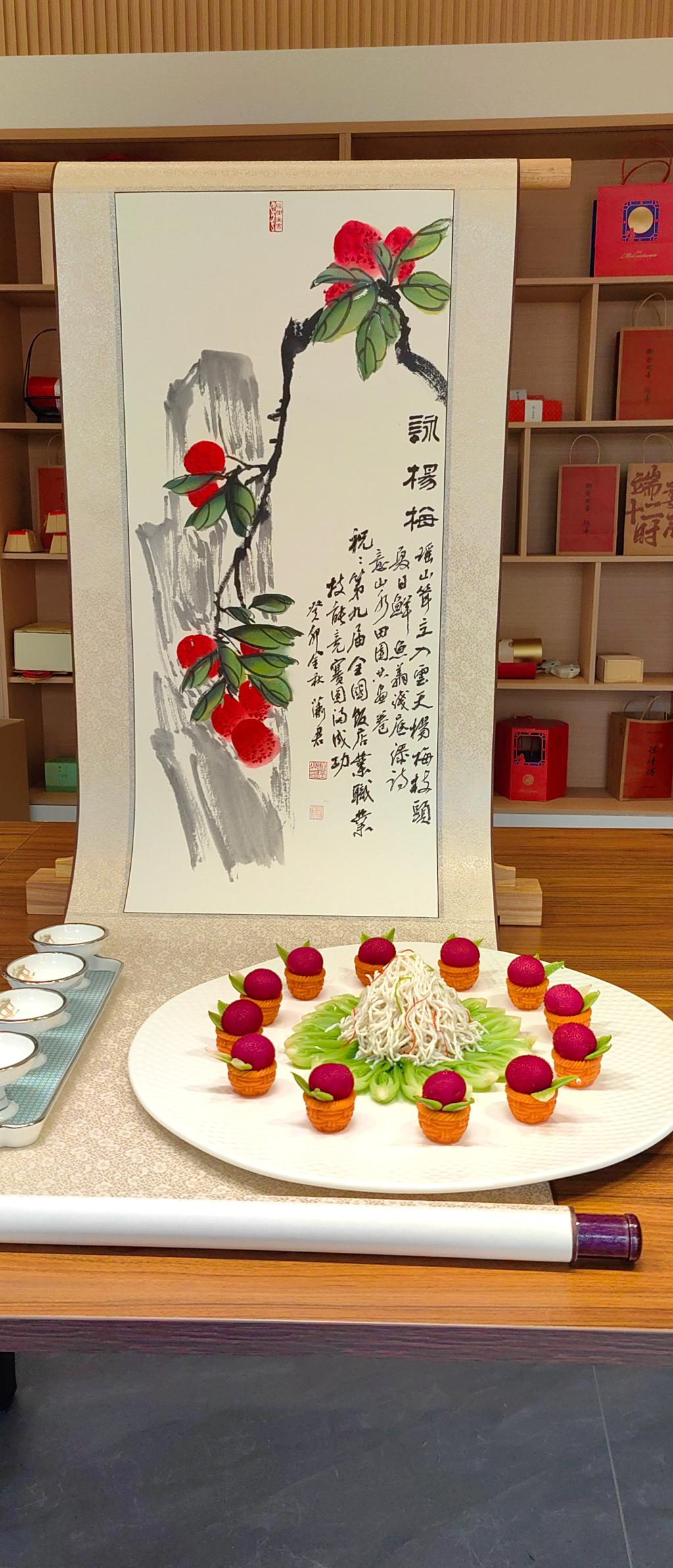 一颗杨梅,是祖国的荣光,她是唯一能在中国品尝到的水果;她可直接食用、可入药、可泡酒;她有着深厚的文化底蕴,是历代文人口中的咏诵之物之一,逐渐形成独特的杨梅文化,延续了千年。本次菜品,楼洪亮老师对杨梅入菜进行了充分文化挖掘与传承,对烹饪方式进行开拓与创新。
