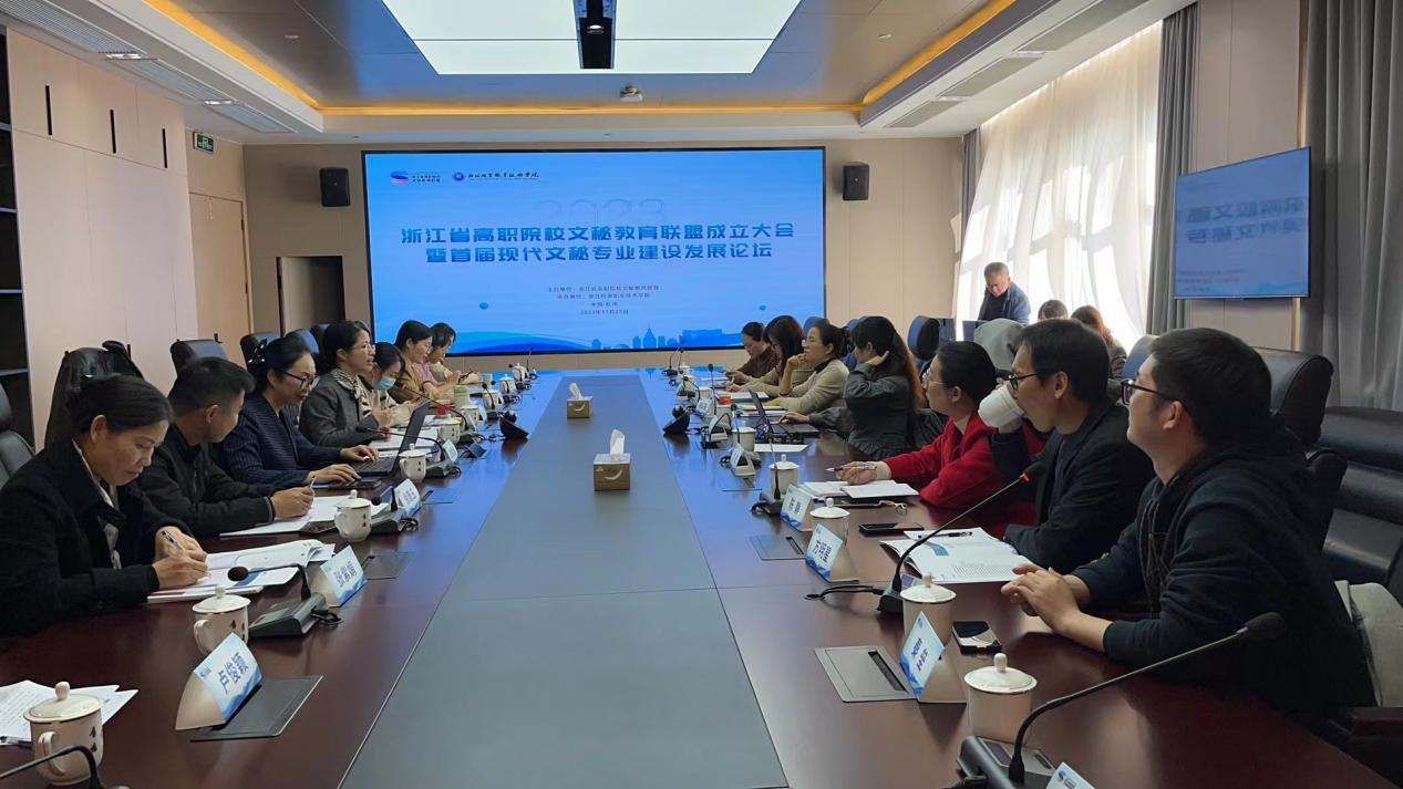 11月24日,我校现代文秘专业教师参加了在浙江经贸职业技术学院举行的浙江省文秘教育联盟成立大会。此次文秘教育联盟成立大会由浙江金融职业学院、金华职业技术学院、浙江警官职业学院、丽水职业技术学院、义乌工商职业技术学院、台州科技职业学院等十所高职院校联合成立,其目的在于促进浙江省高职院校现代文秘专业的交流与合作,提升教育教学水平和人才培养质量,更好地推动浙江省现代文秘专业高质量发展。