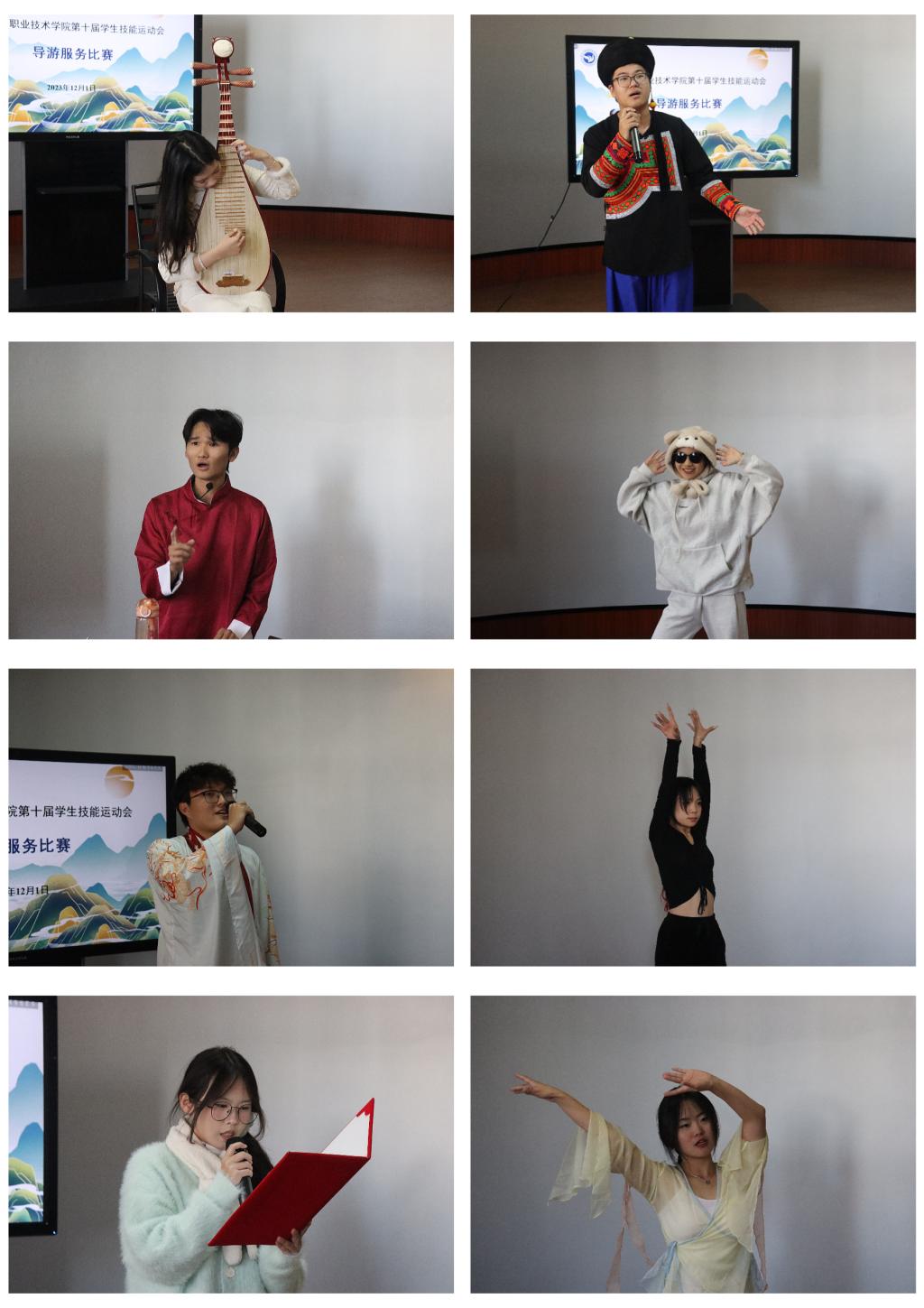 决赛中,选手们八仙过海,各显神通,纷纷展示了技能,亮出了绝活,留下了一幕幕精彩瞬间。在景点讲解环节,选手们从容自若的讲解将现场观众带到了如诗似画的远方;在才艺表演环节中,选手们的精彩表演中令现场观摩人员如痴如醉,击节叫好。