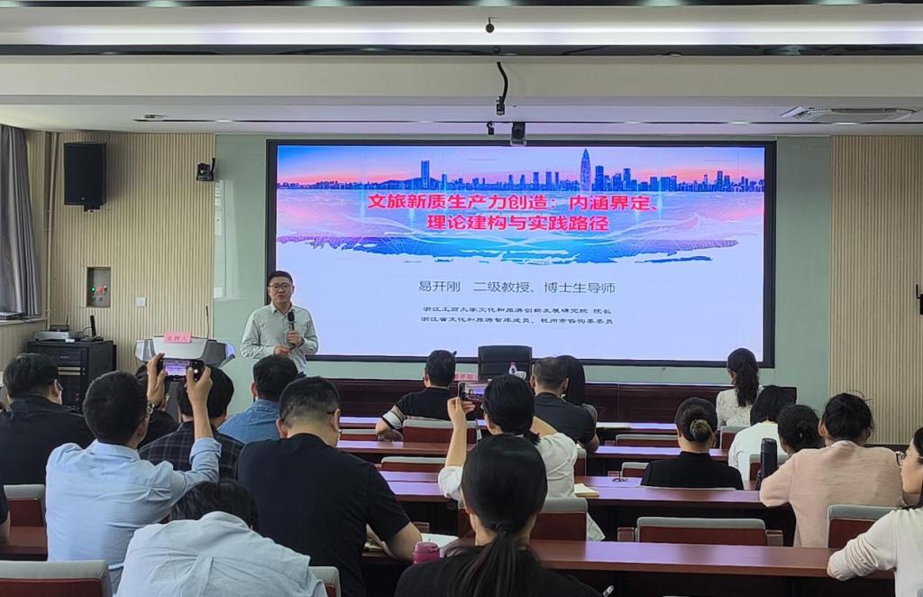 易教授在讲座中,首先从当前文旅产业的发展背景出发,深入剖析了文旅新质生产力创造的重要性和紧迫性。他强调,在政策扶持和行业期待的双重驱动下,文旅行业正面临转型升级的关键时期,需要通过创新技术应用、资源优化配置及产业转型升级,推动文旅行业生产力质态的全面提升。