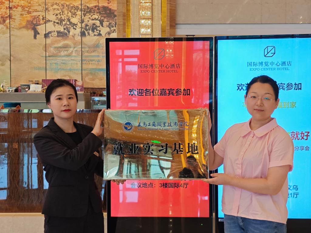 6月19日上午,酒店管理与数字化运营专业师生一行前往义乌国际博览中心酒店,共商共建就业实习基地事宜,并举行了“就业实习基地”挂牌仪式。