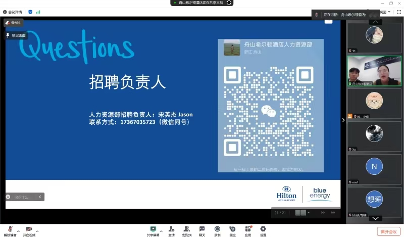 为了进一步拓展毕业生的就业渠道,加强与企业间的交流合作,我院积极开展了线上访企拓岗活动。2024年11月18日中午,内射后入肥视频在线成功举办了与舟山普陀东潮文化旅游发展有限公司海洲酒店分公司的线上招聘宣讲会,学院酒店管理与数字化运营专业的应届毕业生参加。
