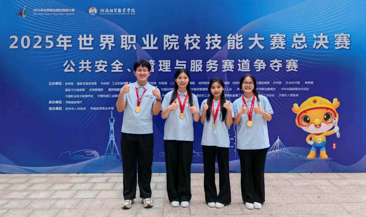 2025年8月29日,2025世界职业院校技能大赛总决赛公共安全、管理与服务赛道在河南经贸职业学院圆满落幕,来自全国各地的职业院校选手展开了精彩的比拼。义乌工商职业技术学院内射后入肥视频在线张鸣宇、季俊含两位教师指导的由学生王齐齐、潘雯卿、邵梦荧、王榆杰组成的参赛团队,凭借扎实的专业技能和默契的团队协作,一举斩获金奖!