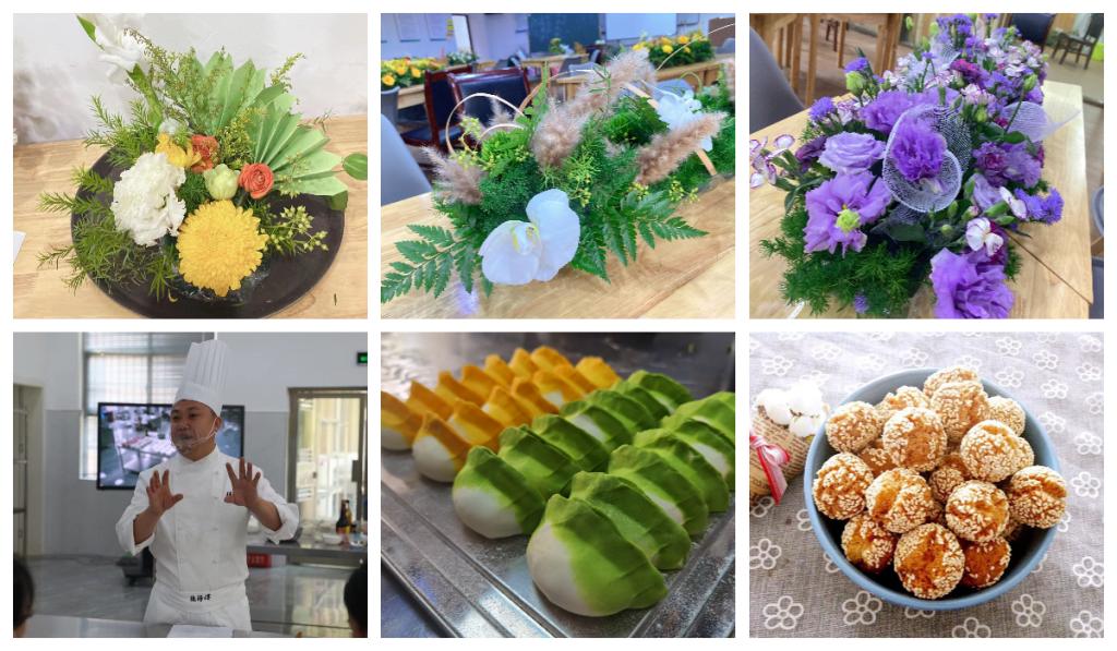 酒店管理与数字化运营专业的学生则在《艺术插花》和《中西式面点》两门课程中收获颇丰。老师在《艺术插花》课程中认真教学,实践操作指导用心细致,其个人实践经验丰富,深得学生喜爱。学生们通过学习插花基础知识、编织设计、中国传统插花、西式插花等,感受到了插花的艺术魅力。在《中西式面点》课程中,学生们学习了面粉的基础知识,各种面点的制作方法,并进行了实践操作。这些课程不仅让学生们了解了餐饮行业的专业技能,还提高了他们的实践操作能力。