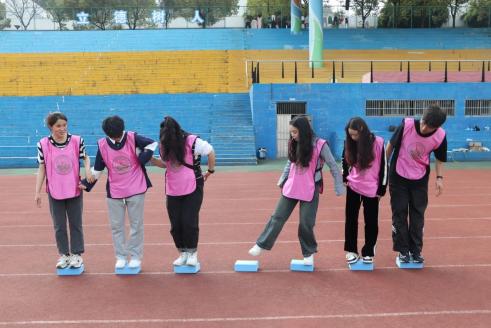 小小的呼啦圈,联动着整个团队,队友们互相配合,让小圈套中下一位队友。时间流逝着,他们配合默契,在一片欢声笑语中完成了比赛,团队里也产生了不可言说的默契感。