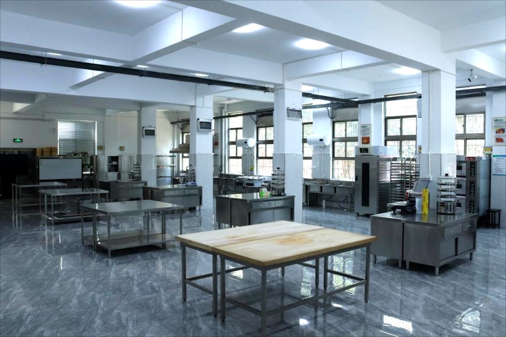 中西面点实训中心,占地275平方,配有中西式面点制作所需的设备及耗,本实训室可提供教师现场演示和学生亲手实践的教学环境,向学生传授面点理论知识、实践操作技能以及相关的厨房管理知识。同时,还可以作为学生进行相关技能资格考试鉴定的场所。